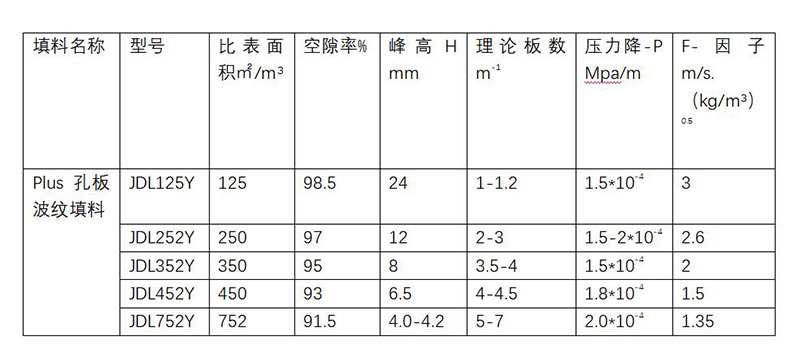 2、PLUS不銹鋼孔板波紋填料技術(shù)特性數(shù)據(jù)