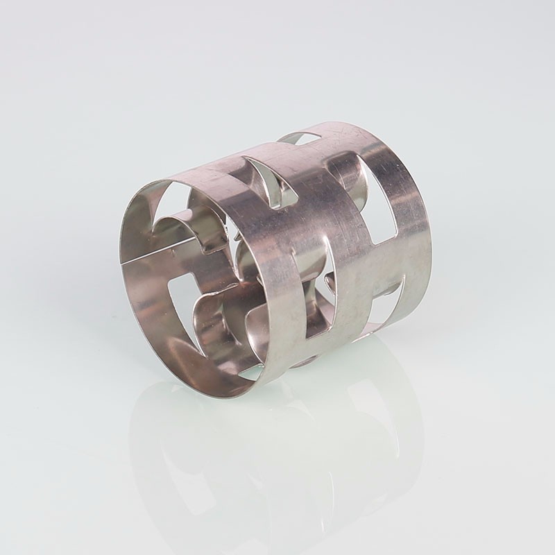 鮑爾環(huán)填料是一種新型填料,是針對(duì)拉西環(huán)的一些主要缺點(diǎn)加以改進(jìn)而出現(xiàn)的,是在普通拉西環(huán)的壁上開(kāi)八層長(zhǎng)方形小窗,小窗葉片在環(huán)中心相搭,上下面層窗位置相互交搭而成。它與拉西環(huán)填料的主要區(qū)別是在于在側(cè)壁上開(kāi)有長(zhǎng)方形窗孔,窗孔的窗葉彎入環(huán)心,由于環(huán)壁開(kāi)孔使得氣、液體的分布性能較拉西環(huán)得到較大的改善,尤其是環(huán)的內(nèi)表面積能夠得以充分利用。